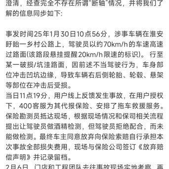 春节本事被嗨嗨们吵得沸沸扬扬的小米SU7断轴事件终于有论断了开云体育,这个故事尽然比思象地还夸张,浮浅梳理下: